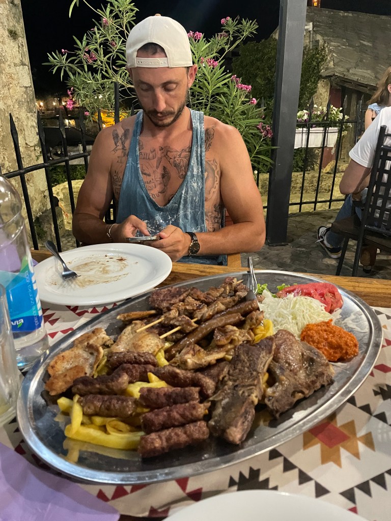 We ordered a mix grill plater for €35 euros which if it wasn’t for two rugby players would have fed a family of 4 easily. A massive bed of chips, veg and a hefty portion of different grilled meats, the two of us rolled out of the place! The total was around €50 as we had a Caprese salad to start, two 1l bottles of water, two fresh juices and two pints. Incredible value for one of the most central eateries in Mostar.